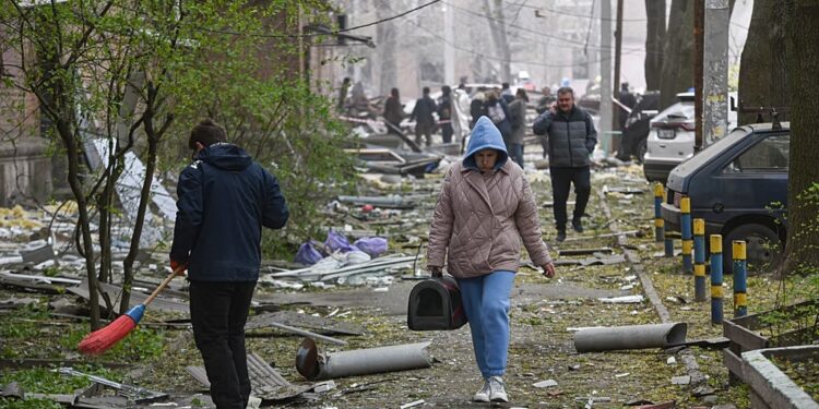 Unas 30 localidades de Ucrania fueron alcanzadas por impactos directos o por la caída de escombros, mientras que 610 de los ataques aéreos fueron neutralizados, dijeron los militares ucranianos.