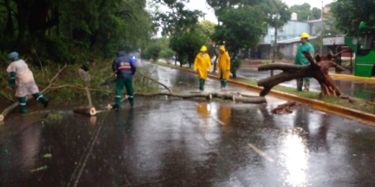 Árboles caídos, corte de cables del tendido eléctrico y monitoreo de semáforos son algunos de los problemas a resolver, tras el fuerte temporal que azotó la zona sur de Misiones, especialmente en Posadas.