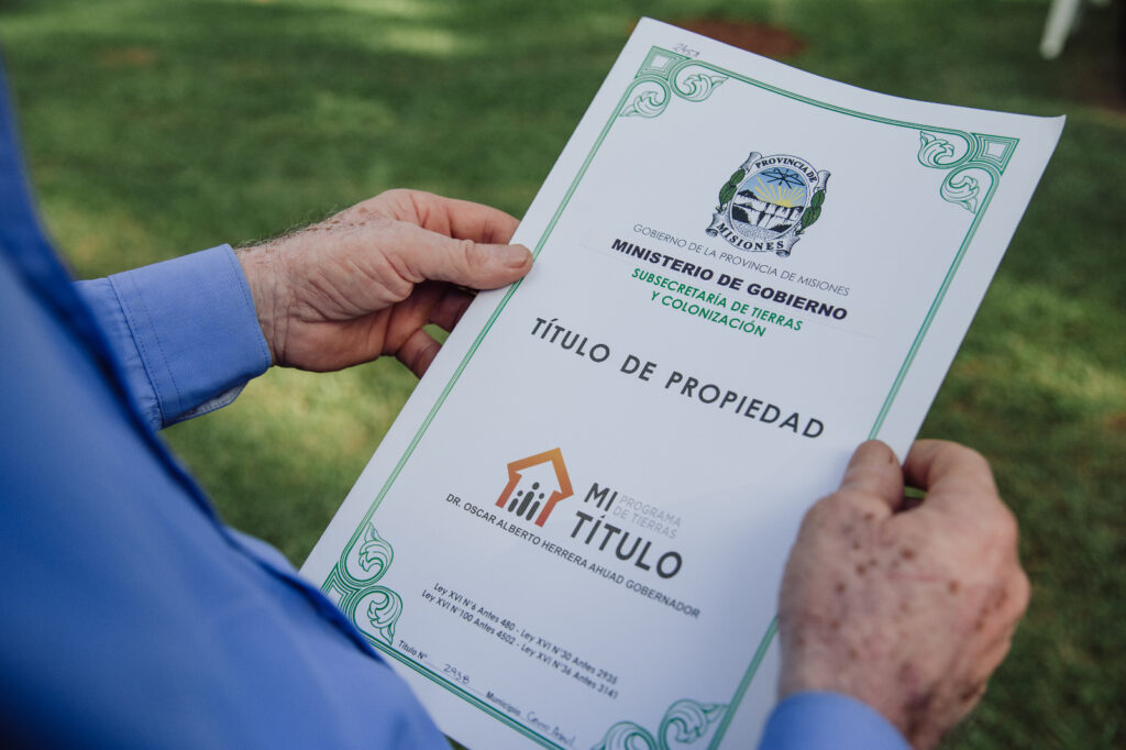 El gobernador Hugo Passalacqua lideró este miércoles la ceremonia de entrega de 66 títulos de propiedad, beneficiando a residentes de quince municipios del centro y sur de Misiones en el marco del Programa Mi Título. Esta iniciativa, impulsada por el Gobierno provincial y vigente desde 2016, facilitó la entrega de 34 mil soluciones de tierras, entre permisos y títulos de propiedad, durante sus ocho años de implementación.
