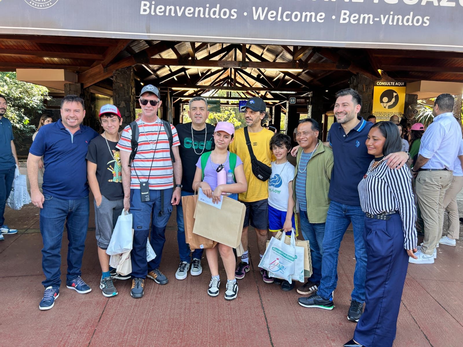 La sorpresa los encontró al ingresar al área protegida, donde fueron recibidos con regalos especiales de Iguazú Argentina e Iguazú Jungle, además de obsequios y experiencias cortesía del Iturem, el Duty Free Shop Puerto Iguazú, el Municipio y la Administración de Parques Nacionales.