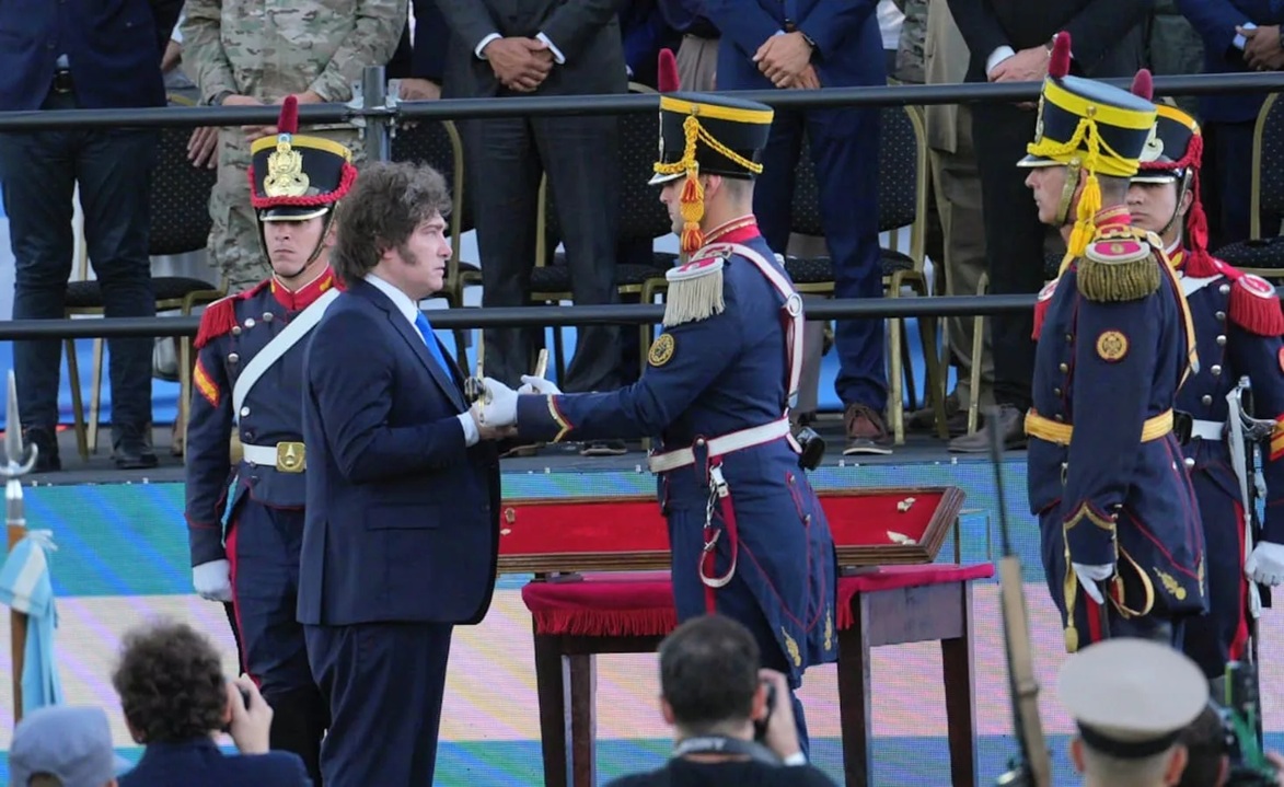 «El sable fue robado dos veces por la Juventud Peronista», remarcó Milei, y al mismo tiempo señaló que esa pieza «es el símbolo material más poderoso» de la Nación», durante el acto que encabezó en el Campo de la Gloria en San Lorenzo, donde ratificó y justificó el traspaso de esa reliquia hacia el Regimiento de Granaderos a Caballo, ubicado en el barrio porteño de Palermo.