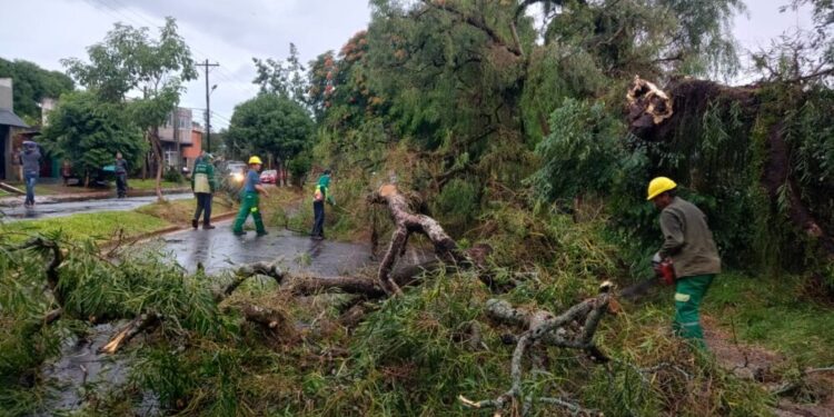 Equipos de emergencia avanzan con tareas de despeje y asistencia en distintos puntos de la ciudad para restablecer la circulación de vehículos y reducir riesgos de los peatones por derrumbe de postes de energía eléctrica. Desde la municipalidad de Posadas recomiendan a la población transitar con precaución y mantenerse atenta ante posibles peligros derivados de las condiciones del tiempo.