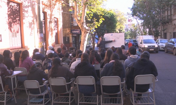 Dos Santos explicó que la modalidad apunta a sostener la actividad académica mientras se expone el reclamo. “No nos sirve parar y quedarnos en casa. Necesitamos que el conflicto se vea y se discuta con los alumnos y con la sociedad”, afirmó.