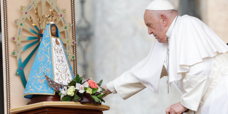 «Hoy, en mi Patria, en Argentina, se celebra la solemnidad de Nuestra Señora de Luján, cuya imagen está aquí presente. Oremos por la Argentina, para que el Señor la ayude en su camino», dijo el pontífice.