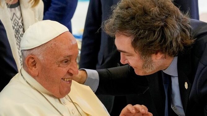 Hoy el Papa Francisco fie parte de la reunión del G7 y su discurso frente a líderes políticos de los países más importantes del mundo, apuntó contra los que «buscan debilitar la política» y quieren «reemplazarla con la economía o dominarla con alguna ideología».«No se puede ignorar que detrás de ese hecho están a menudo los errores, la corrupción y la ineficiencia de algunos políticos, no de todos», agregó Jorge Bergoglio en la cumbre del G7.El papa Francisco profundizó su análisis y cuestionó: «¿Puede funcionar el mundo sin política? ¿Puede haber un camino universal hacia la fraternidad y la paz social sin una buena política? Nuestra respuesta a estas preguntas es no».El presidente Javier Milei anotó su segundo encuentro con el Papa Francisco en menos de un año tras su cruce en la previa del panel sobre inteligencia artificial en la cumbre del G7 en Italia. El pontífice lo saludó como al resto de las autoridades presentes, pero el jefe de Estado argentino aprovechó para abrazarlo.
