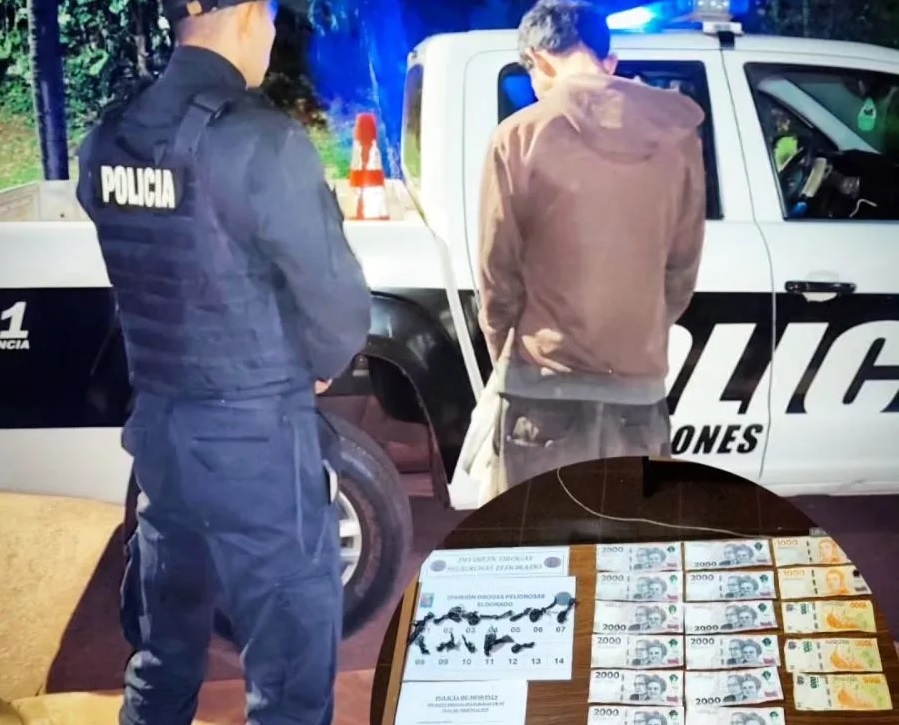 Un hombre de 33 años fue detenido en Eldorado tras un procedimiento de la División Drogas Peligrosas de la Unidad Regional III en el marco de tareas preventivas. El hecho ocurrió en la intersección de las calles Vicente López y Comechingones en el kilómetro 9 donde los efectivos detectaron al sospechoso.