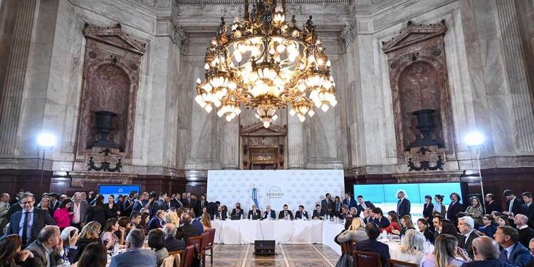 Con las visitas de Eduardo Chirillo, secretario de Energía, y Julio Cordero, secretario de Trabajo, la Cámara de Senadores retomó el debate de la Ley Bases en plenario de comisiones.El Gobierno trabaja en la Cámara alta un nuevo borrador en el que contempla aportes de los distintos bloques y que ya logró la media sanción en Diputados, tras la aprobación en particular y en general la semana pasada. En tanto, hay expectativa por la jornada del jueves que se llevará a cabo en medio del paro general convocado por la CGT.
