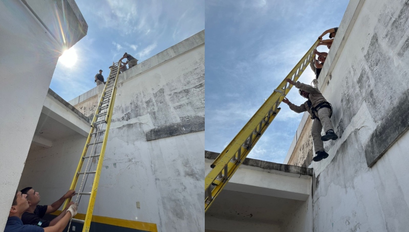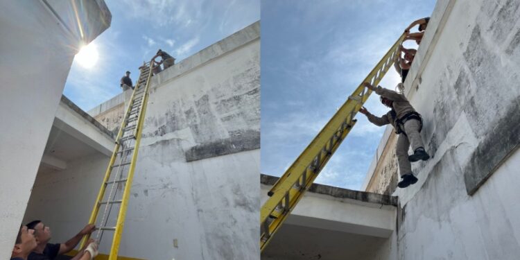 Al llegar al lugar, los efectivos utilizaron las medidas necesarias para acceder al techo del edificio y ayudar al hombre, quien había recuperado la conciencia pero no podía descender por sus propios medios.