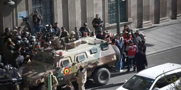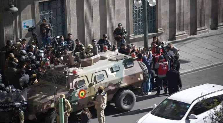 Imágenes difundidas por teleSUR muestran al menos seis tanquetas militares con uniformados armados en su interior en las cercanías de la Plaza Murillo, lugar donde se encuentran las sedes de la Casa del Pueblo, la Asamblea Legislativa Plurinacional y la Cancillería boliviana. Ciudadanos se han congregado en la plaza para evitar una posible ruptura constitucional.