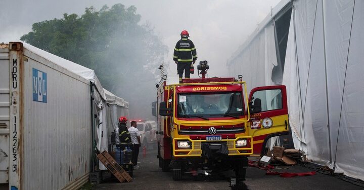 Incendio en la cumbre climática COP30 en Belém, Brasil.Incendio en la cumbre climática COP30 en Belém, Brasil.